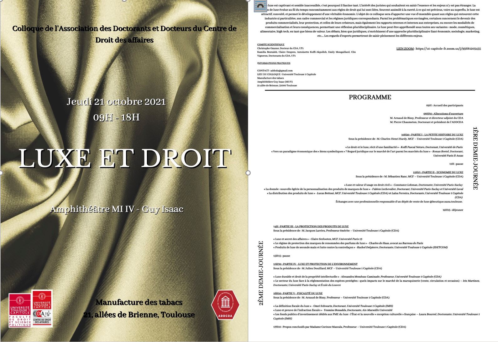"Luxe et droit", colloque organisé par l'association des doctorants et docteurs du Centre de droit des affaires