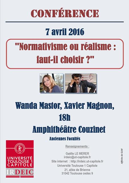 "Normativisme ou réalisme : faut-il choisir ?" Conférence des Professeurs Wanda Mastor et Xavier Magnon, IRDEIC