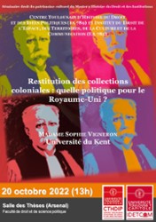 "Restitution des collections coloniales : quelle politique pour le Royaume-Uni ?", conférence organisée par le CTHDIP