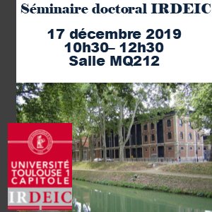L'IRDEIC organise un séminaire doctoral le 17 décembre 2019. Ce séminaire s’adresse à tous les doctorants du laboratoire. A cette occasion, plusieurs doctorants pourront présenter leurs travaux.