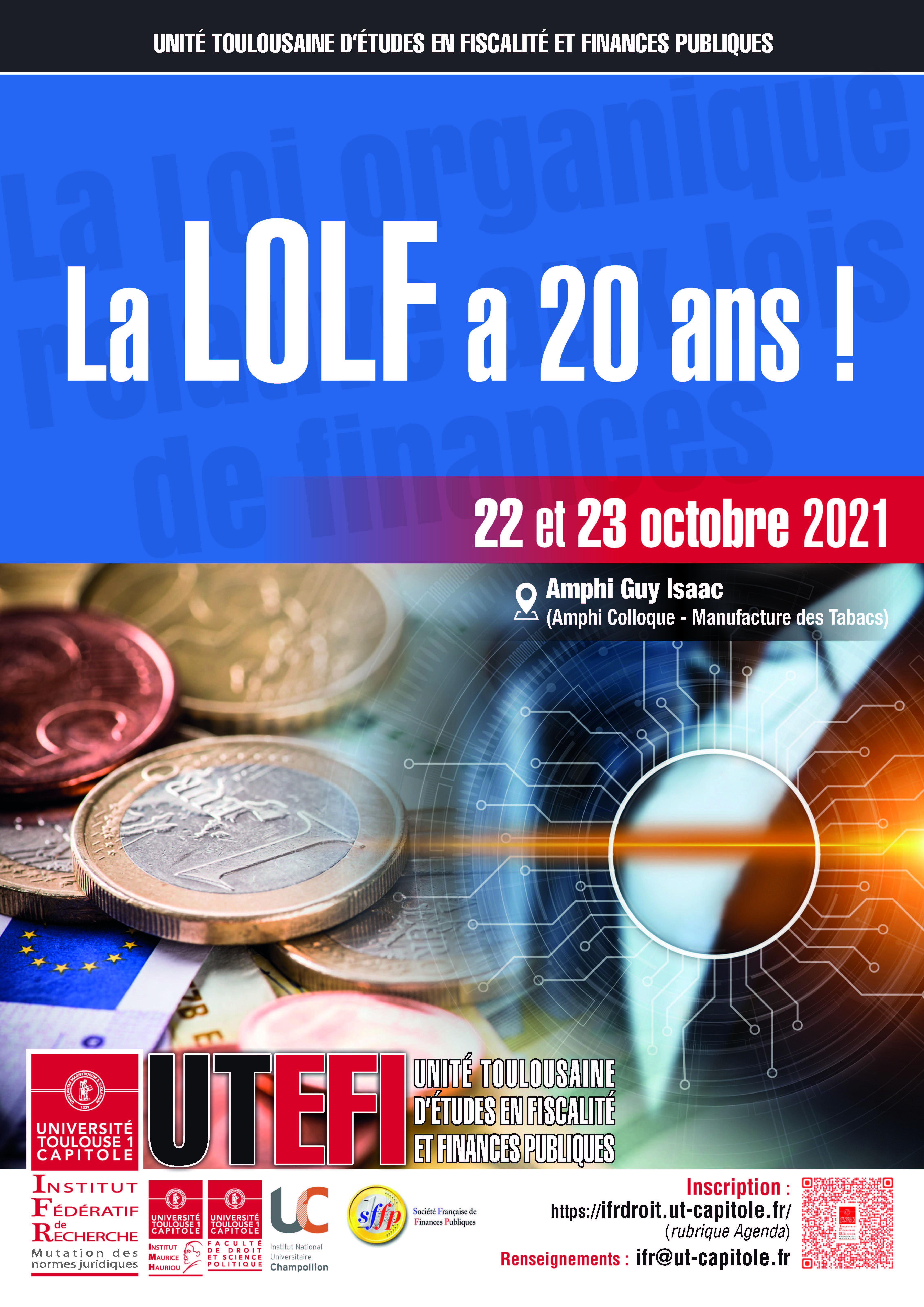 De multiples questions se posent aujourd’hui quant à l’avenir de la LOLF et de ses perspectives de réformes. Le colloque organisé par l’Institut fédératif de recherches « Mutation des normes juridiques », l’Institut Maurice Hauriou et la Société Française de Finances publiques (Avec le soutien de la Faculté de droit de Toulouse et de l’Institut Universitaire Champollion d’Albi) se propose de participer à cette vaste réflexion sur les