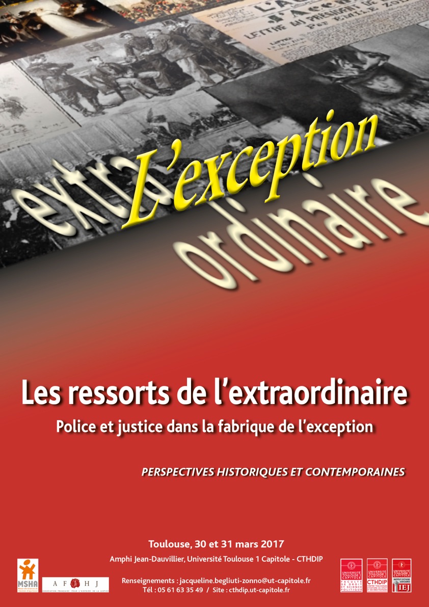 Les ressorts de l'extraordinaire. Justice et police dans la fabrique de l'exception. Perspectives historiques et contemporaines. Colloque organisé par le CTHDIP
