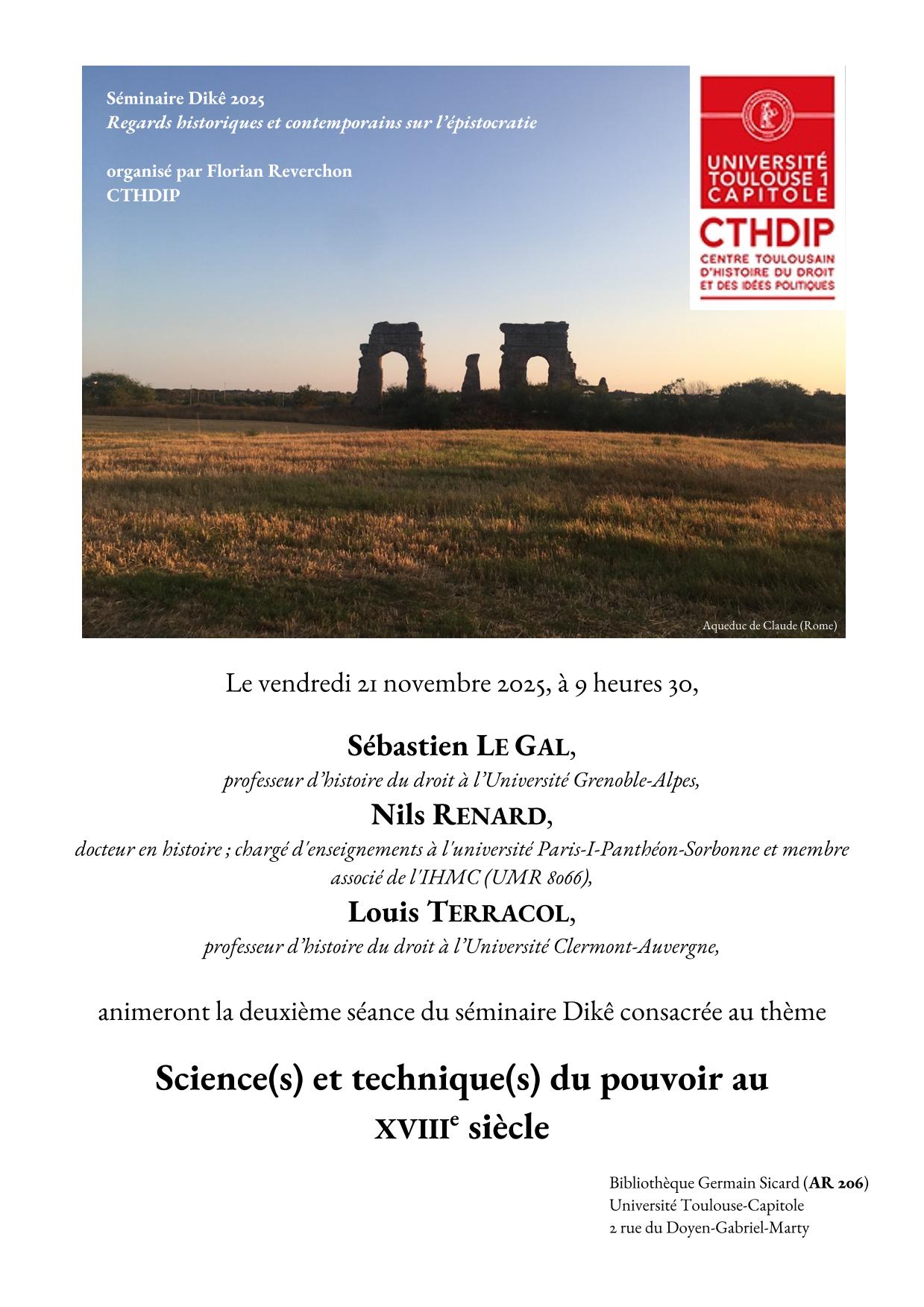 "Regards historiques sur l’épistocratie. Science, pouvoir et démocratie des Lumières à nos jours", seconde journée du séminaire Dikè dirigé par Florian Reverchon (CTHDIP)