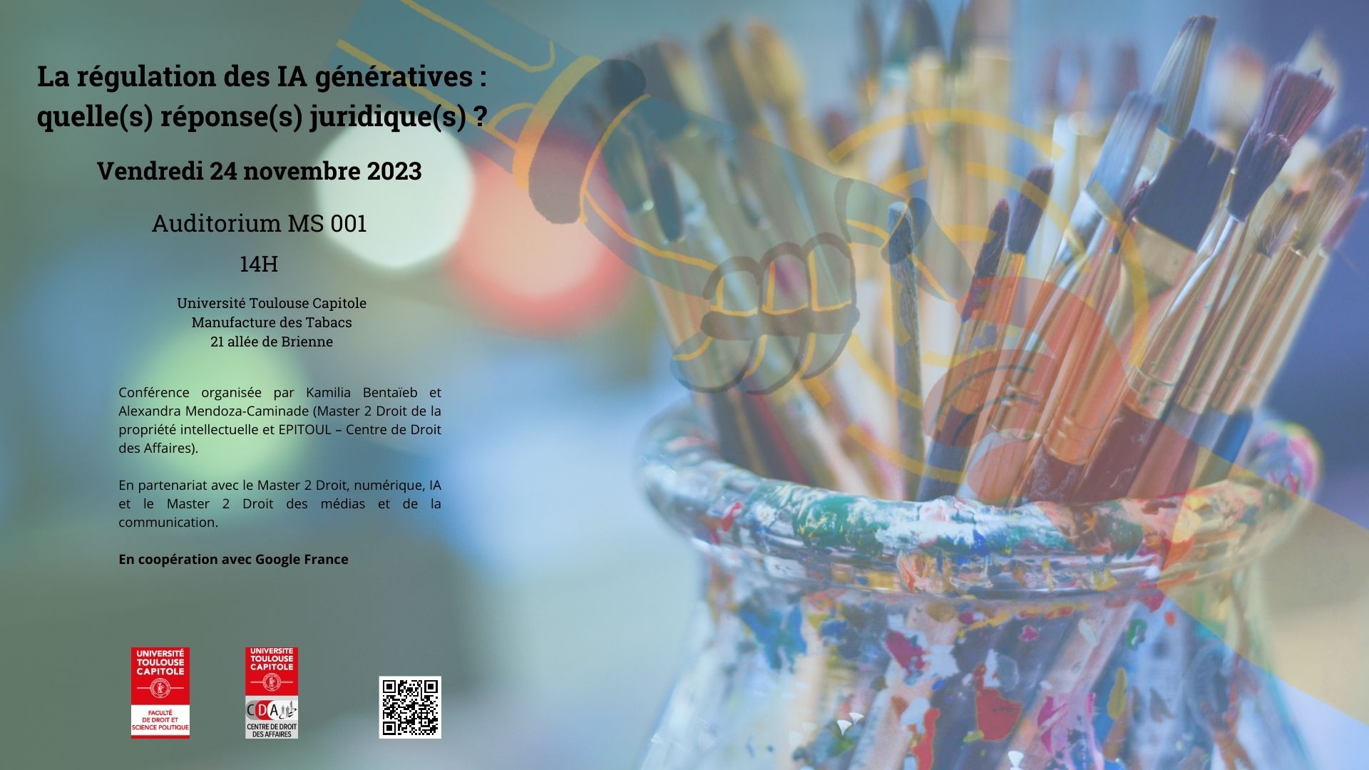 Une conférence sur "la régulation des IA génératives : quelle(s) réponse(s) juridique(s)" en partenariat avec Google France aura lieu vendredi 24 décembre à UT Capitole.