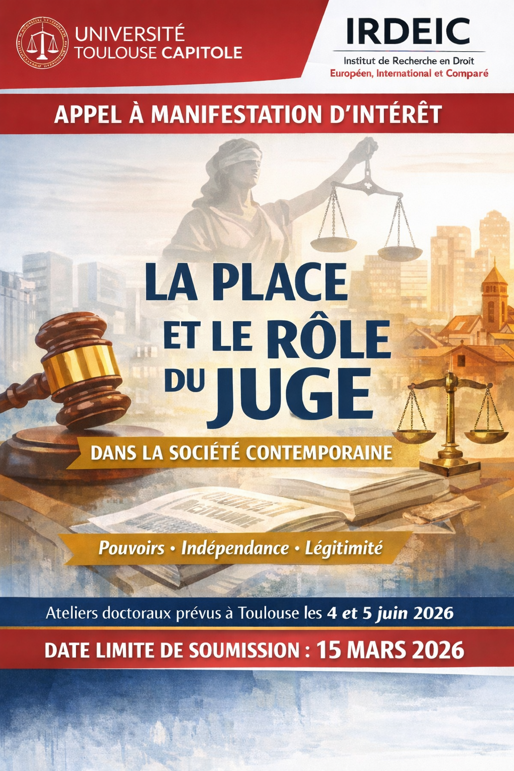 Appel à candidature " La place et le rôle du juge dans la société contemporaine ", Ateliers doctoraux 2026 de l'IRDEIC