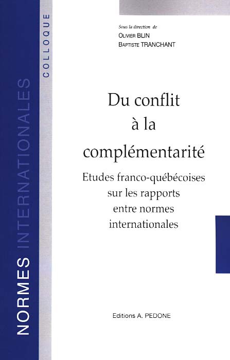 Du conflit à la complémentarité Etudes franco-québécoises sur les rapports entre normes internationales, Actes du colloque IRDEIC 2013 M. Baptiste Tranchant et M. Olivier Blin IRDEIC Editions A. Pedone