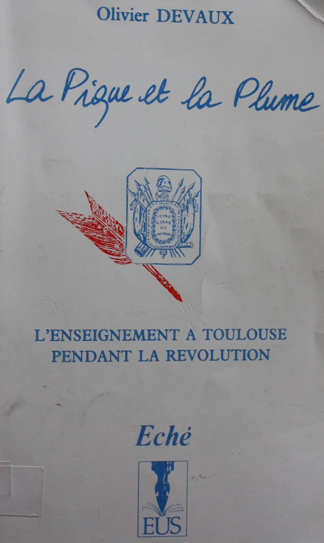 Olivier Devaux, La pique et la plume : l'enseignement à Toulouse pendant le Révolution, Toulouse, Eché-Editions universitaires du Sud, 1988, 182 p.