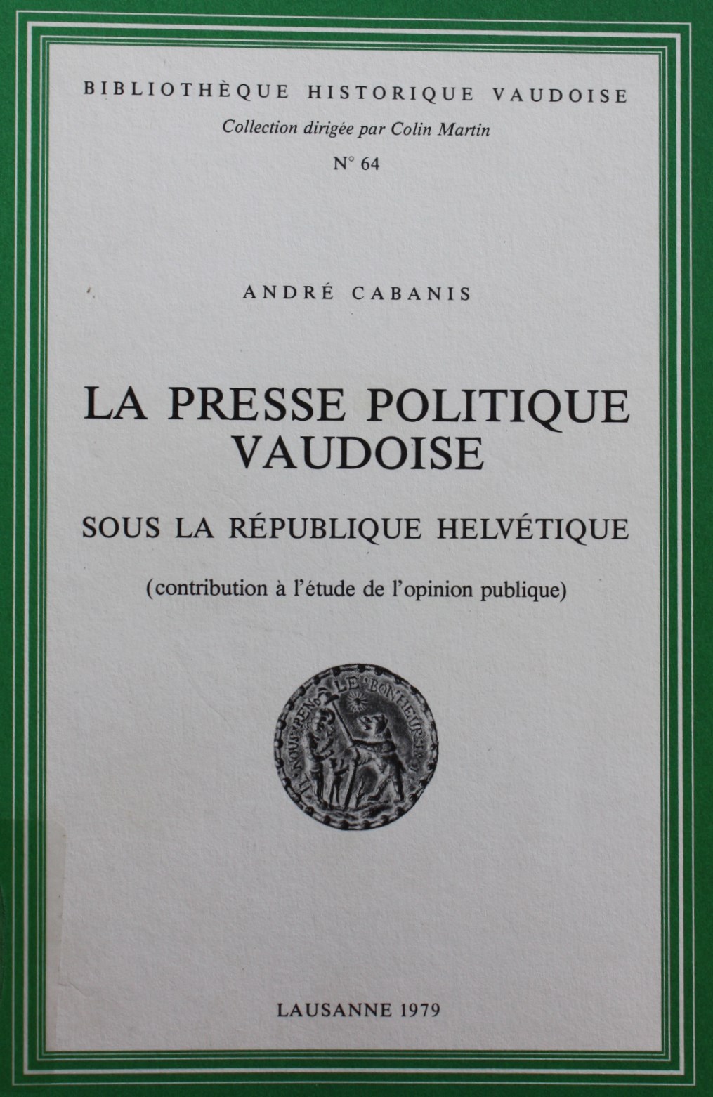 La presse politique vaudoise sous la République helvétique par André Cabanis