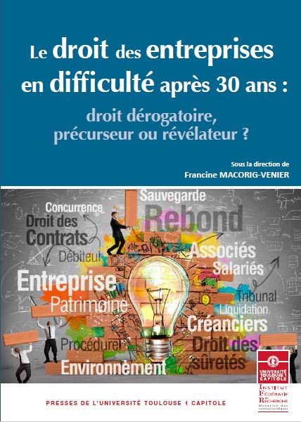 "Le droit des entreprises en difficulté après 30 ans : droit dérogatoire, précurseur ou révélateur ?" - Actes de colloques de l'IFR n°30 sous la direction de Francine Macorig-Venier