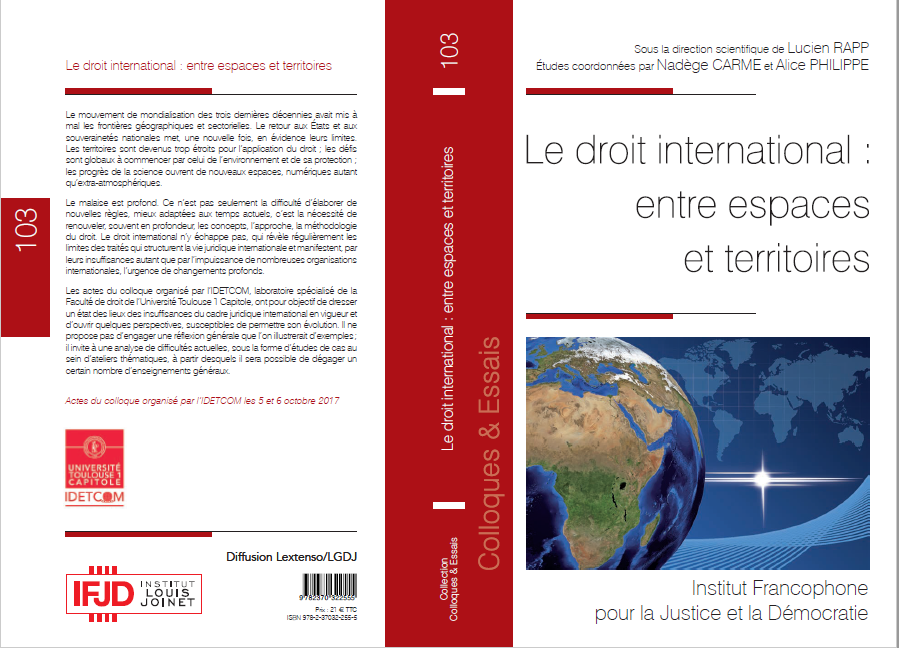 Le droit international : entre espaces et territoires. Sous la direction scientifique de Lucien Rapp. Études coordonnées par Nadège Carme et Alice Philippe.