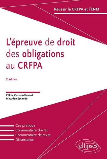 "L’épreuve de droit des obligations au CRFPA." Ouvrage Céline Castets Renard Irdeic, en collaboration avec Maître Matthieu Escande