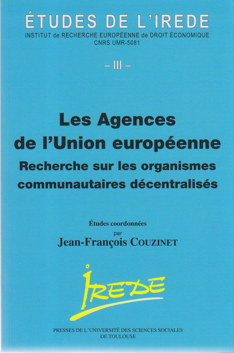 "Les agences de l'Union Européenne" Recherche sur les organismes communautaires décentralisés - Études de l'IRDEIC III" coordonnées par Jean-François Couzinet