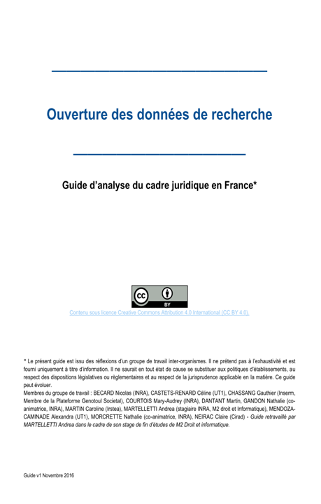 Ouverture des données de la recherche. Guide d'analyse du cadre juridique en France.