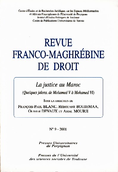 Créée en avril 1993 à Tunis, à l'initiative du CENTRE D'ETUDES ET DE RECHERCHES JURIDIQUES SUR LES ESPACES MEDITERRANEEN ET AFRICAIN FRANCOPHONES, U.P.R.E.S DE L'Université de Perpignan, de l'INSTITUT D'ETUDES POLITIQUES rattaché à l'Université des Sciences Sociales de Toulouse et du CENTRE DE PUBLICATION DES UNIVERSITES de Tunisie, la REVUE FRANCO-MAGHREBINE DE DROIT, se propose, notamment par la comparaison des droits, de participer à l'étude de la science juridique des pays du Maghreb.