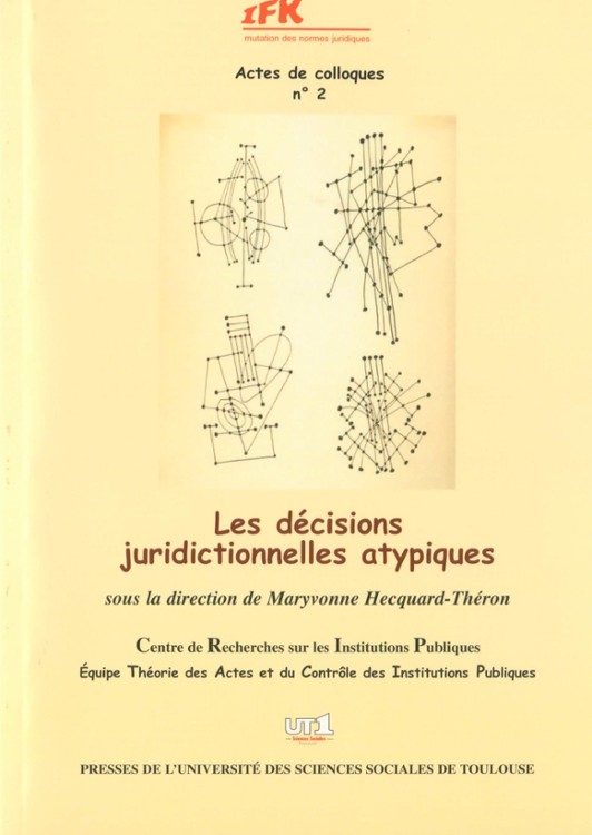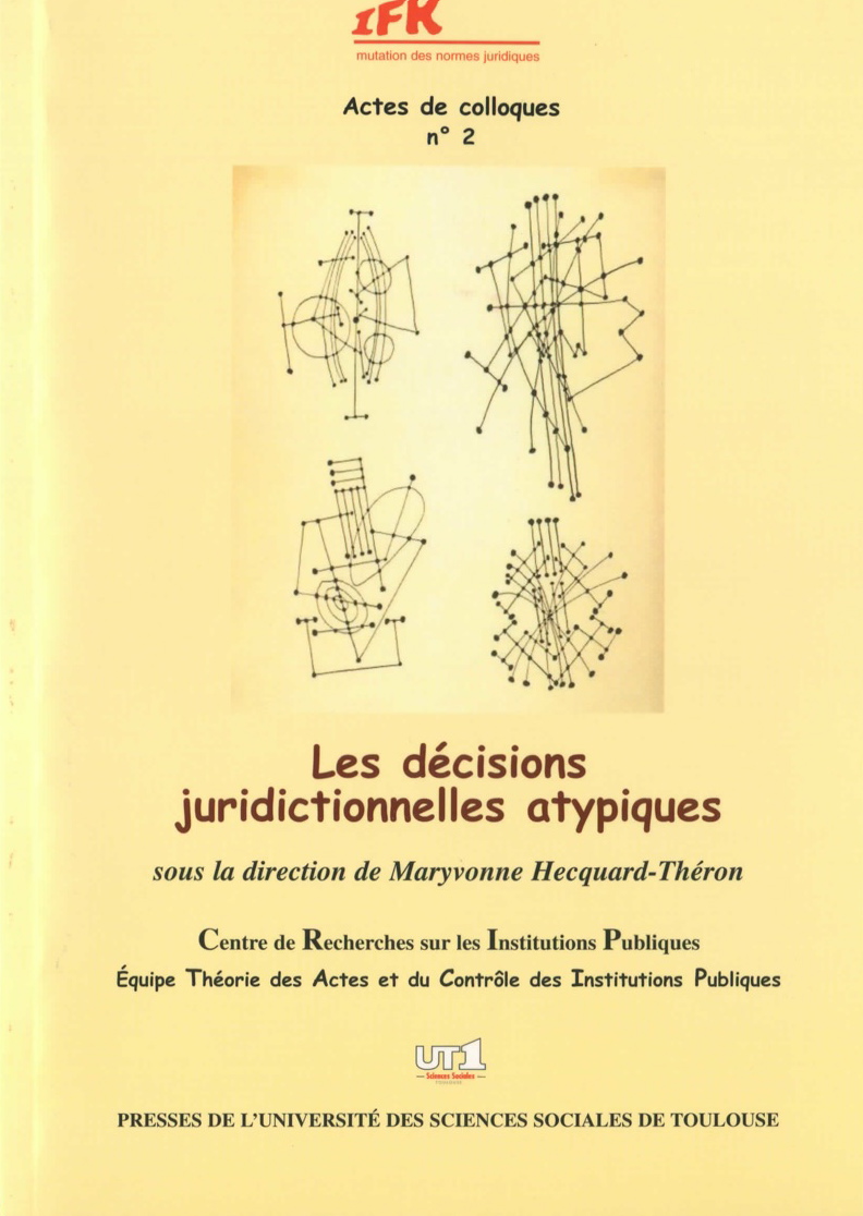 " Les décisions juridictionnelles atypiques" - Actes de colloques de l'IFR n°2 sous la direction de Maryvonne Hecquard-Théron