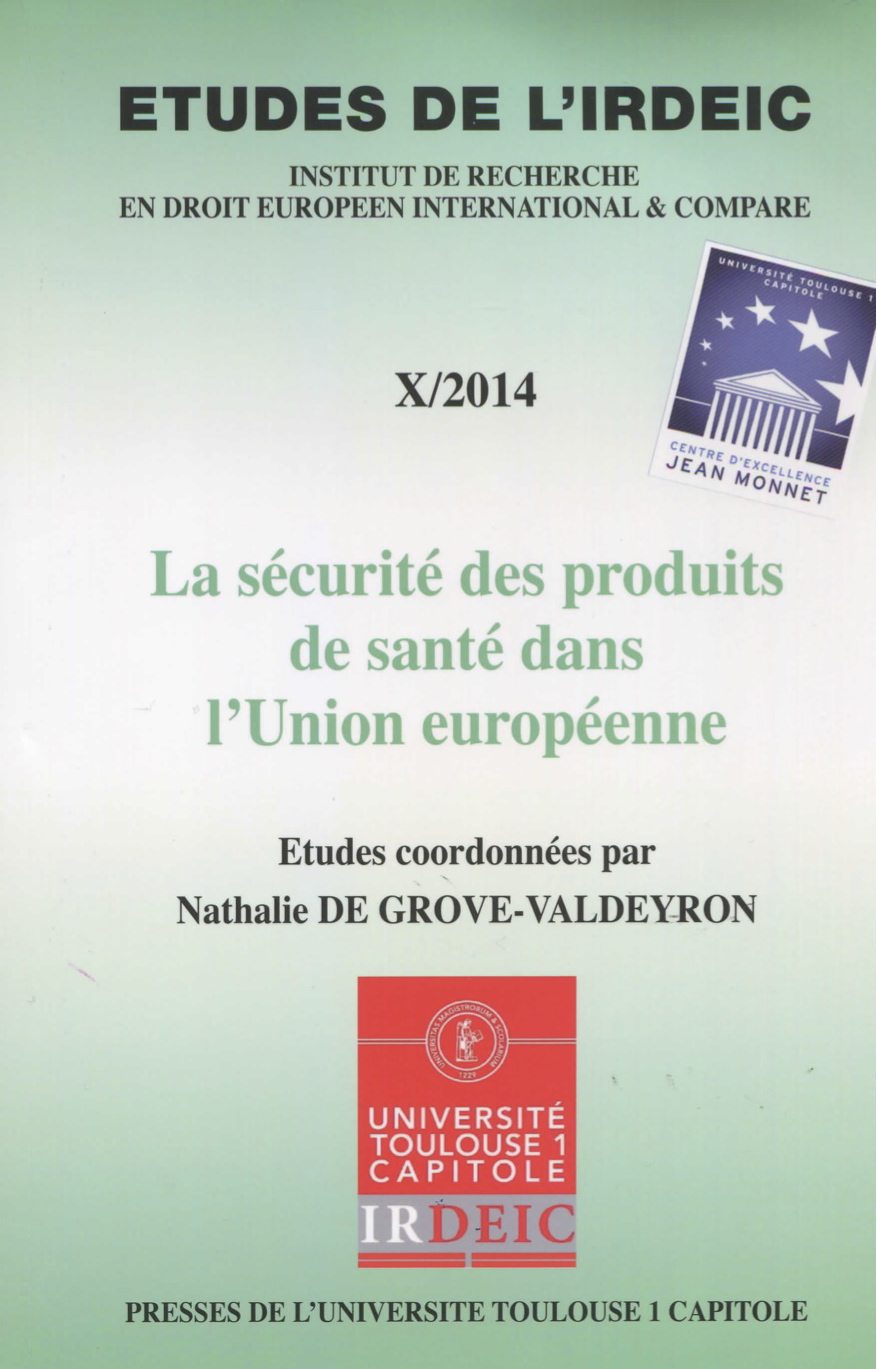 "La sécurité des produits de santé dans l'Union européenne - Etudes de l'IRDEIC n° X" sous la direction de Nathalie De Grove-Valdeyron