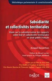 Ce prix a été décerné à Arnaud Duranthon pour sa thèse intitulée « Subsidiarité et collectivités territoriales. Etude sur la subsidiarisation des rapports entre Etat et collectivités en droit public français », préparée sous la direction du professeur Philippe Raimbault et soutenue le 2 décembre 2015, au sein de l’Institut Maurice Hauriou (IMH).