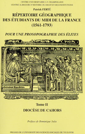 "Répertoire géographique des étudiants du midi de la France (1561-1793) pour une prosopographie des élites-Tome 2" ouvrage de Patrick Ferte