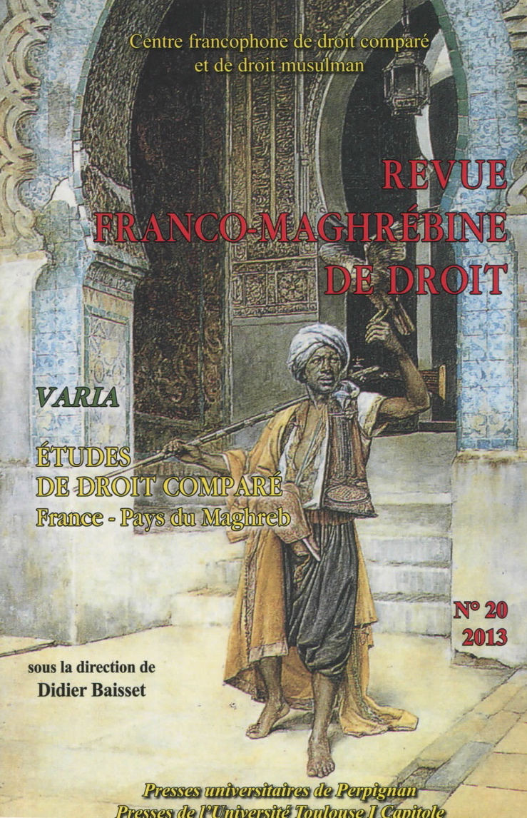 "Revue Franco-Maghrébine de Droit n° 20/2013-Etudes de droit comparé France-Pays du Maghreb n°20" revue dirigée par Didier Baisset