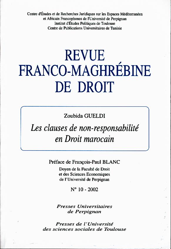 "Revue Franco-Maghrébine de Droit n°10 - Les clauses de non-responsabilité en Droit marocain" dirigée par Zoubida GUELDI
