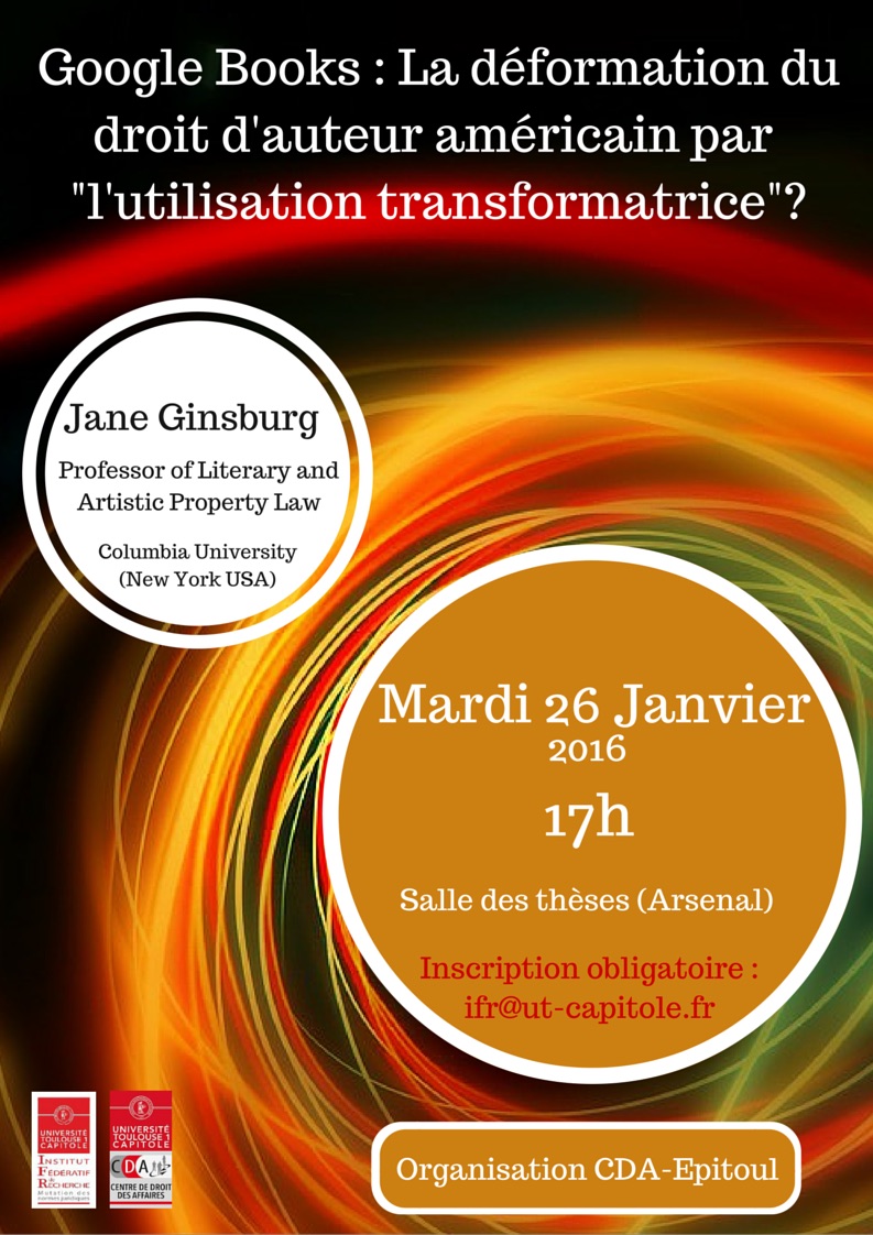 "Google Books : La déformation du droit d'auteur américain par "l'utilisation transformatrice ?" Conférence ouverte à tous organisée par Epitoul-CDA & M2 Propriété intellectuelle