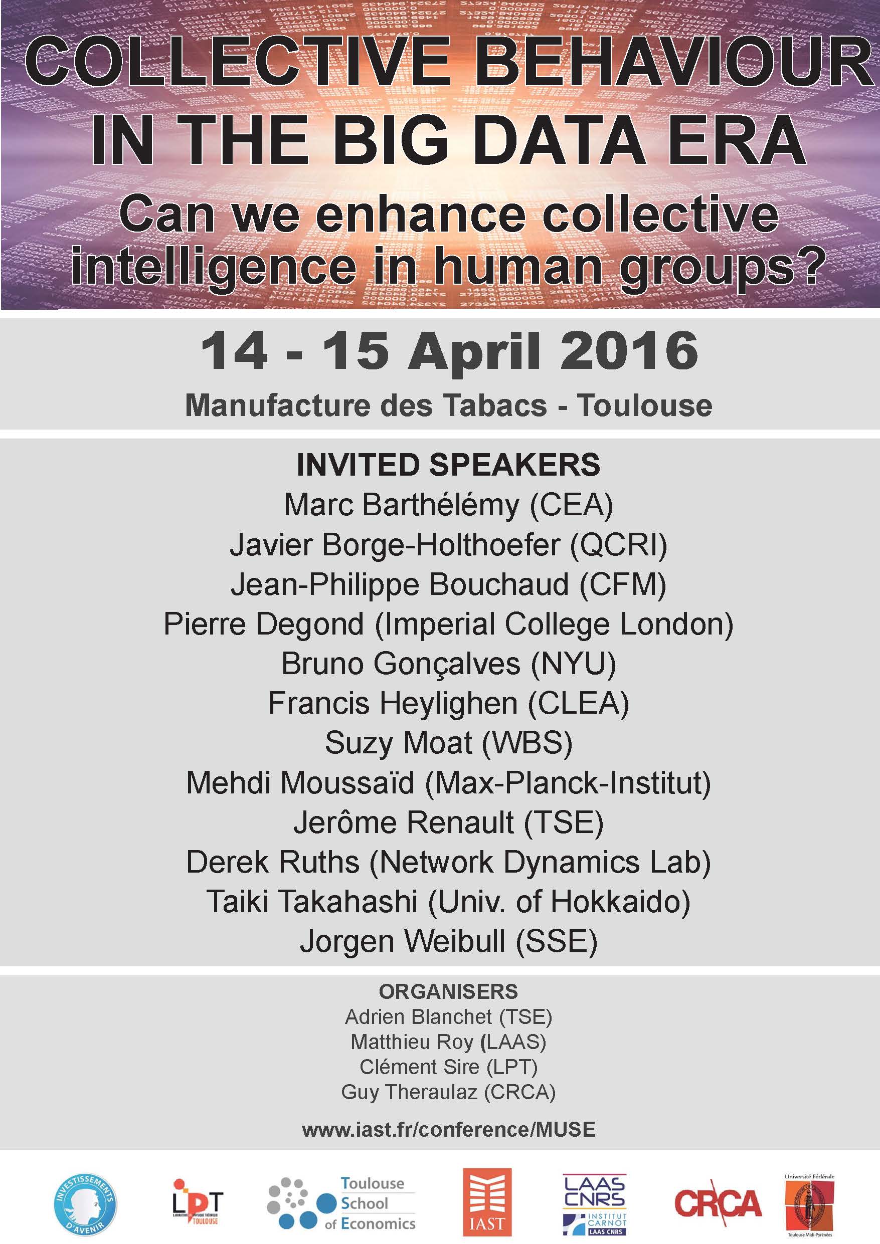 Lors de ces 2 jours de séminaires, l'intérêt sera porté à l'analyse quantitative et la modélisation informatique du comportement collectif des groupes humains.