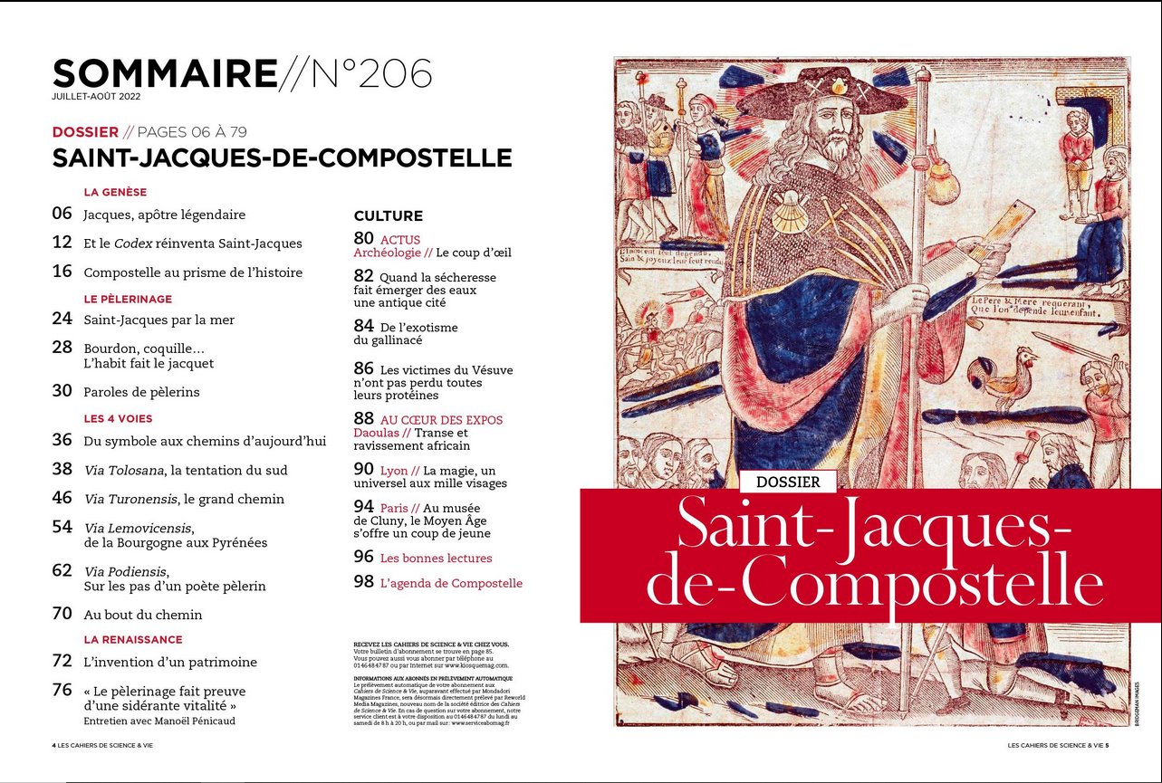 In Les Cahiers Sciences & Vie . Le Mystère de Compostelle, la belle histoire qui a mis le monde en marche. Juillet/Août 2022 n°206, page 79. Propos recueillis par Kassiopée Toscas.