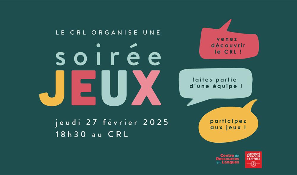 Venez participer à une Soirée Jeux, le jeudi 27 février 2025 à partir de 18h30, au CRL.