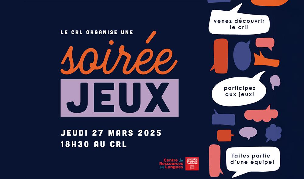 Le Centre de Ressources en Langues a le plaisir d'organiser une Soirée Jeux, le jeudi 27 mars 2025, à partir de 18h30.
