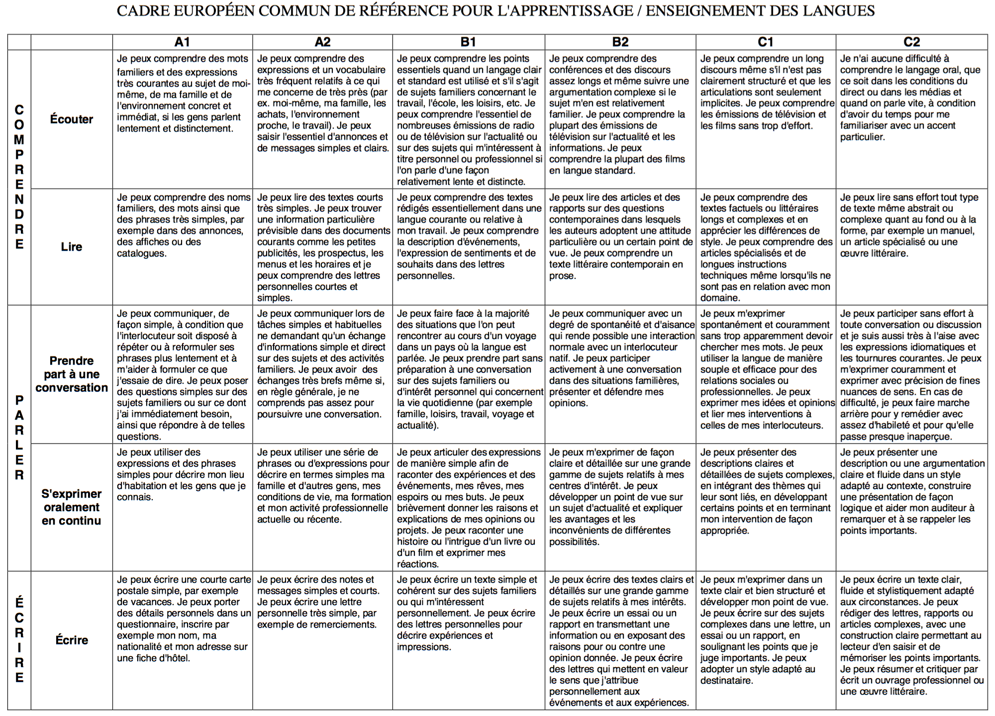 Cadre Européen Commun de Référence pour les Langues (CECRL)