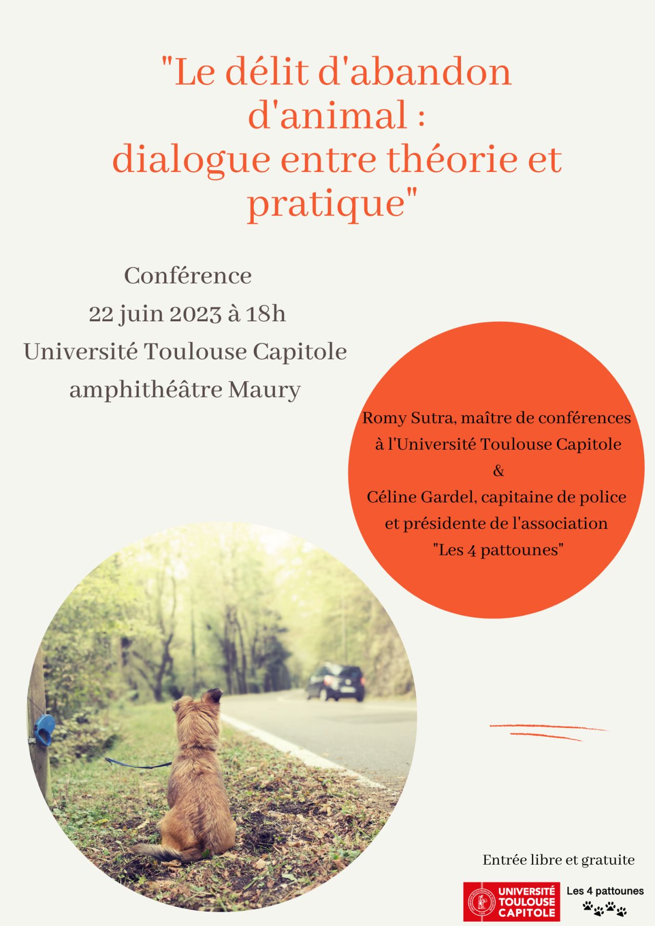 L'Université Toulouse Capitole organise, en collaboration avec l'association Les 4 pattounes, une conférence sur "Le délit d'abandon d'animal : dialogue entre théorie et pratique".