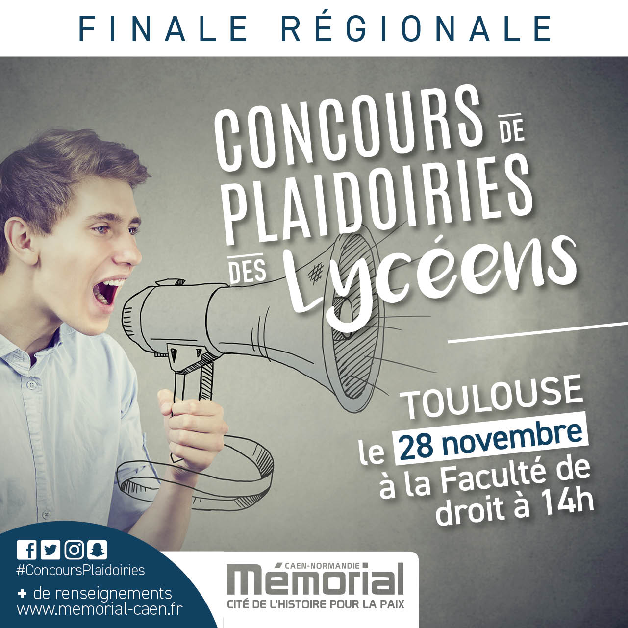 Pour la troisième année consécutive, la Faculté de Droit a le plaisir d'accueillir la finale régionale du concours de plaidoiries des lycéens, organisé par le mémorial de Caen.