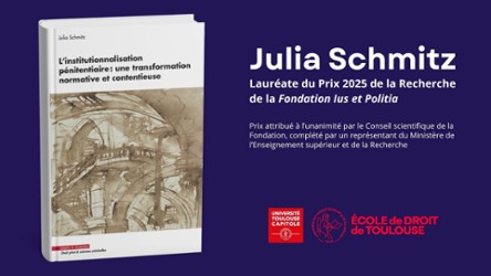 La Fondation Ius et Politia - Académie des sciences morales et politiques a décerné à l’unanimité son Prix 2025 de la Recherche à Julia Schmitz, maître de conférences à l’École de droit de Toulouse, pour son ouvrage "L'institutionnalisation pénitentiaire : une transformation normative et contentieuse".