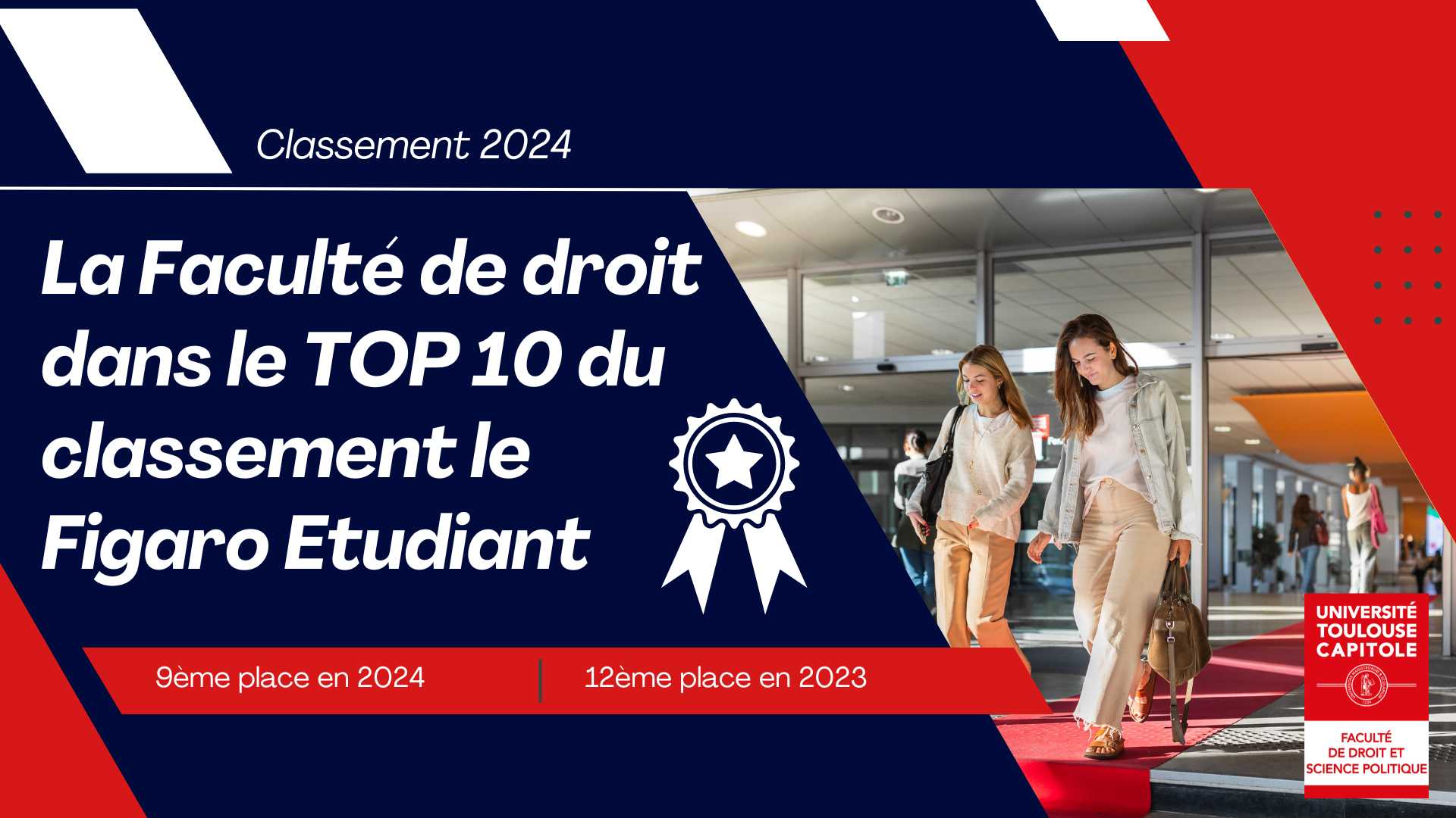 Classement 2024 : La Faculté de droit de Toulouse entre dans le Top 10 du classement le Figaro Etudiant