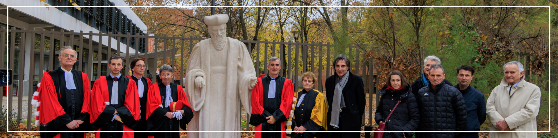 Mise à disposition de la Faculté de Droit par la Mairie de Toulouse, la statue Jacques Cujas a été inaugurée le 8 décembre, en présence de M. le Vice-Président patrimoine et développement durable Jean-François Giacuzzo, M. l'adjoint au Maire Pierre Esplugas-Labatut, M. le Doyen de la Faculté de Droit Matthieu Poumarède, M. le Directeur du CTHDIP Florent Garnier et M. le Président de l'Académie de Législation Jacques Raibaut.