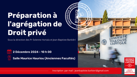 Dirigée par les Professeurs Jean-Baptiste Barbièri et Solenne Hortala, la Préparation à l'agrégation de Droit privé de la Faculté de Droit débutera le 2 décembre.