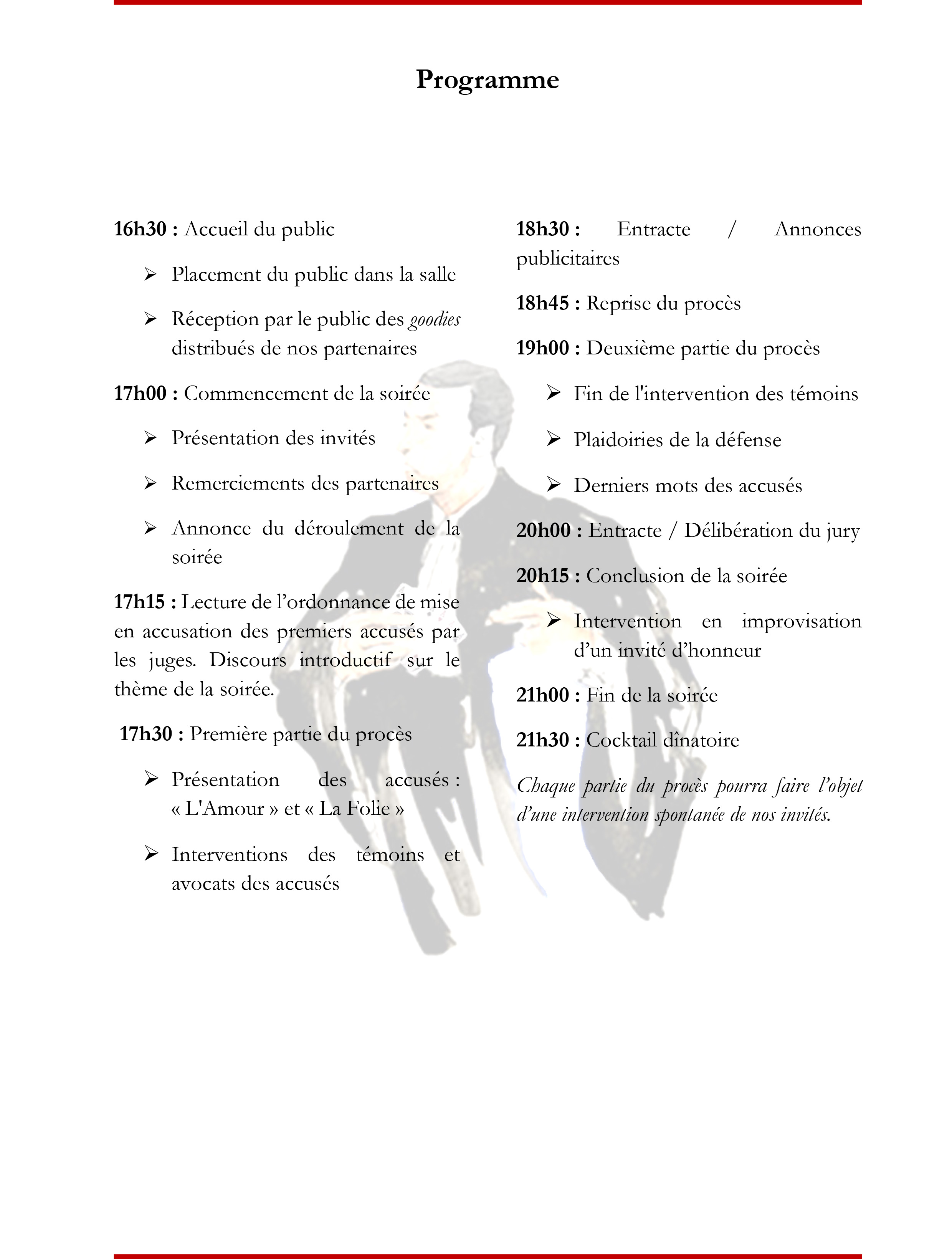 Chaque partie du procès pourra faire l’objet d’une intervention spontanée de nos invités.
