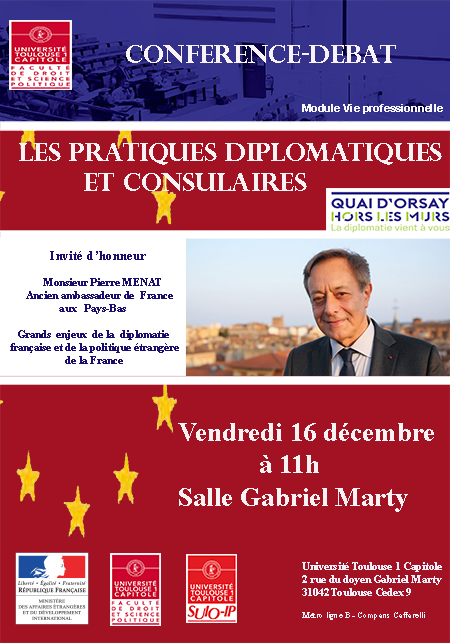 "Les pratiques diplomatiques et consulaires" conférence-débat avec Pierre Ménat par la Faculté de Droit et Science Politique de l'Université Toulouse Capitole