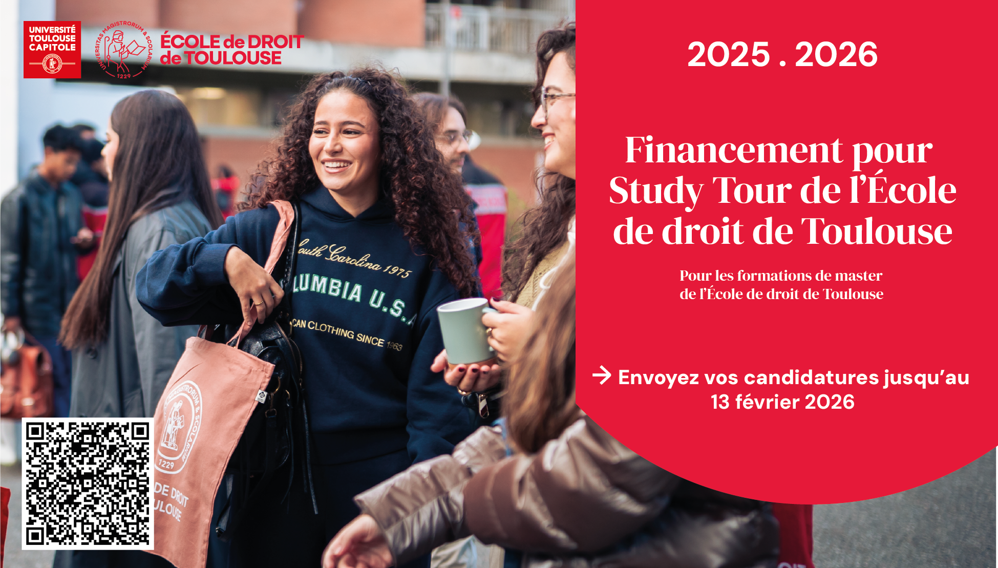 Pour l'année universitaire 2025-2026, l'École de droit de Toulouse accompagne les projets de Study Tour portés par ses étudiants. La prochaine commission de financement aura lieu en février.