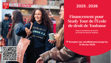 Les étudiants en Master de l’École de Droit de Toulouse souhaitant organiser un Study Tour, avec le soutien de leurs responsables pédagogiques, peuvent déposer une demande de subvention auprès de l’École de Droit de Toulouse.