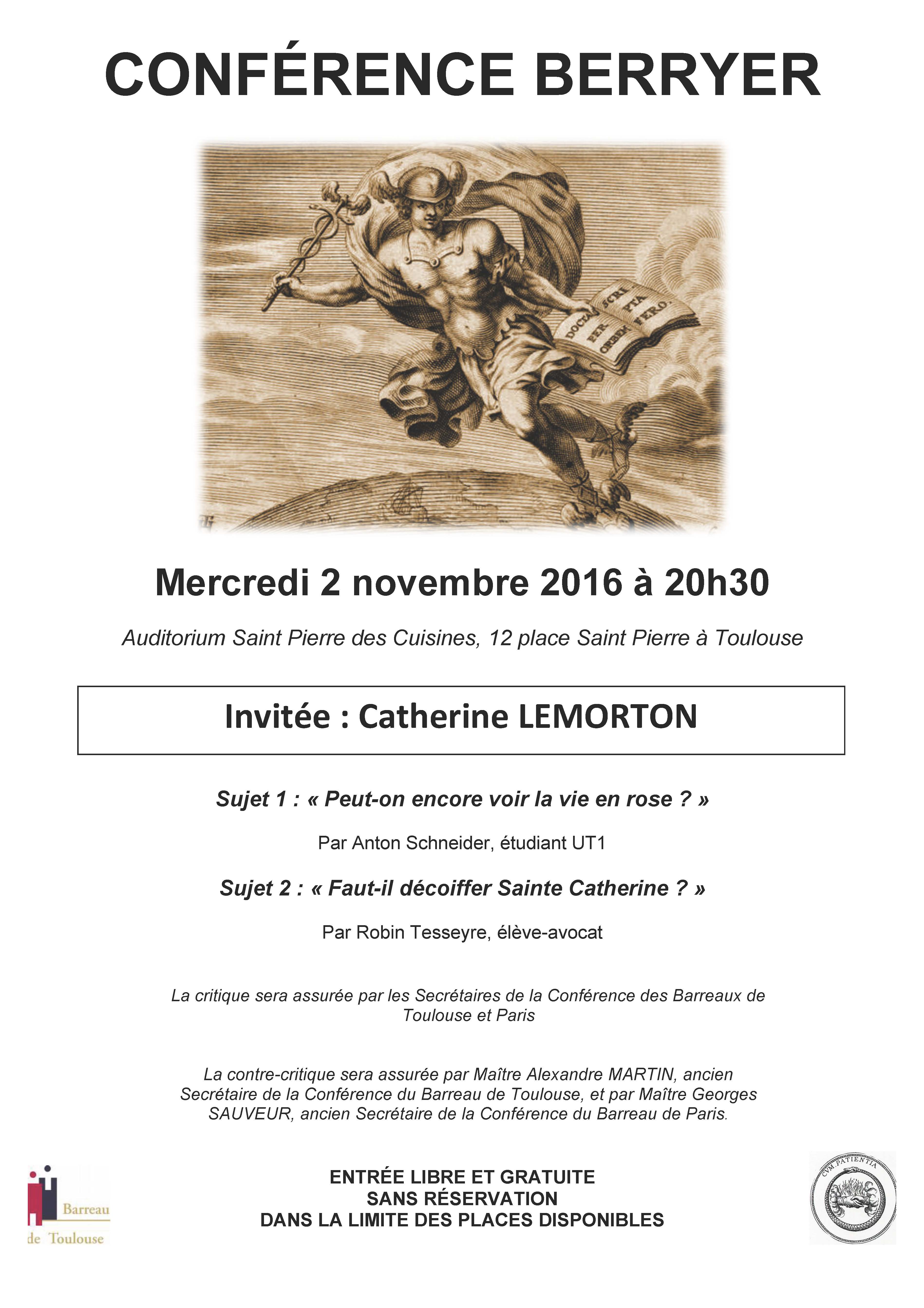Dans le respect de la tradition des Conférences Berryer, il tentera de défier la Conférence en prononçant un discours d'environ 10 minutes sur le sujet proposé : "Peut-on encore voir la vie en rose"