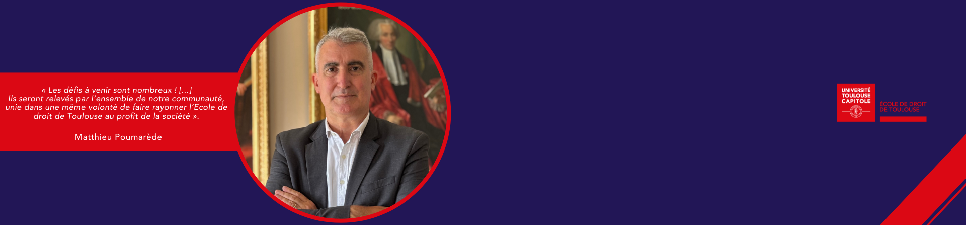 Ils seront relevés par l’ensemble de notre communauté, unie dans une même volonté de faire rayonner l’Ecole de droit de Toulouse au profit de la société ». Matthieu Poumarède.