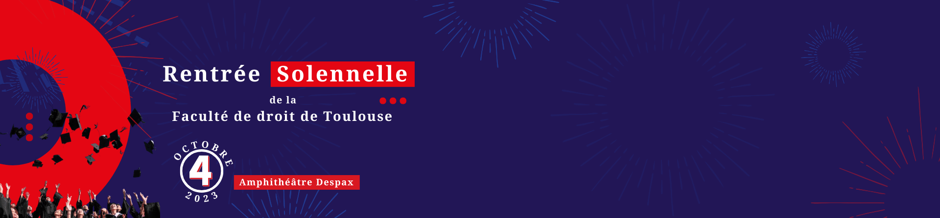 La Faculté de Droit et de Science Politique organise sa traditionnelle Rentrée solennelle le soir du 4 octobre 2023, de 18 h à 19 h 30 en amphithéâtre Despax clôturant ainsi la Fête nationale de la Nuit du Droit. La cérémonie se tiendra sous le haut parrainage de M. Robert Badinter, mais comptera également d'autres invités surprises.