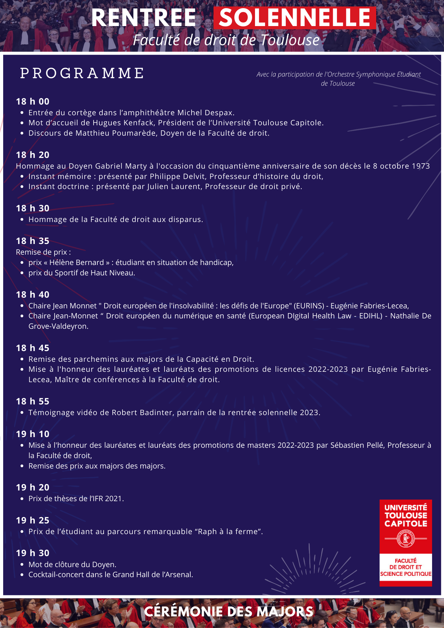 Rentrée solennelle de la Faculté de Droit et de Science Politique de Toulouse 2023 (Nuit du Droit)