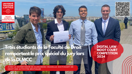 Trois étudiants de la Faculté de Droit remportent le prix spécial du jury lors de la Digital Law Moot Court Competition