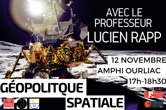La TESLA, en partenariat avec European Horizons, Model United Nations et l'IDETCOM, organise une conférence de Lucien Rapp sur la "Géopolitique spatiale", le mardi 12 novembre de 17h à 18h30.