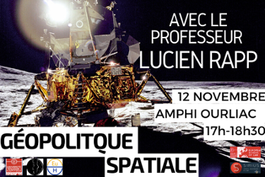 Très impliqué dans la transmission de savoirs aux étudiants, Lucien Rapp interviendra pour une conférence sur la "Géopolitique spatiale", le mardi 12 novembre 2019 de 17h à 18h30, à la demande des étudiants de la TESLA, du MUN et de l'IDETCOM.