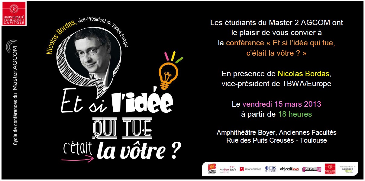 En présence de Nicolas Bordas, vice-président de TBWA/Europe, auteur de l'ouvrage "L'idée qui tue" et intervenant dans le Duel des Communicants sur I>Telé.