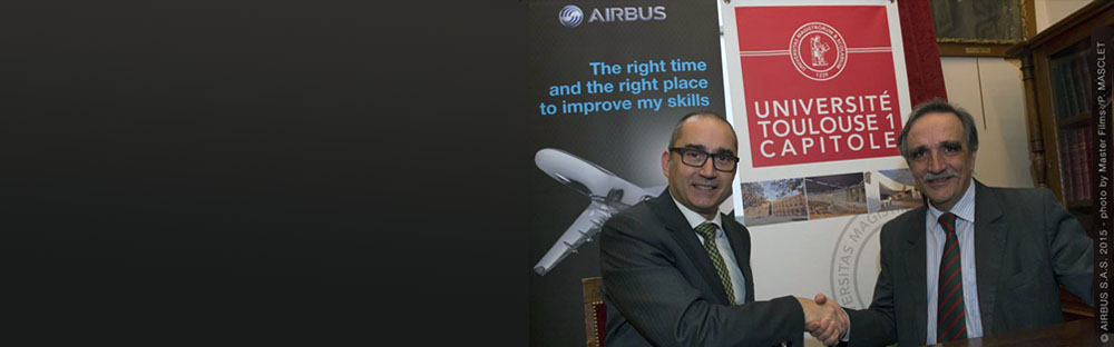 Airbus et l’Université Toulouse Capitole ont signé vendredi 13 mars une convention de partenariat. Première convention de ce type dans l'histoire d'Airbus.