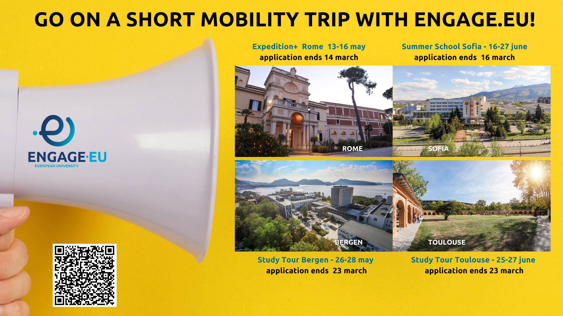 Sofia, Bergen or even Rome! Whether you're a Bachelor or Master Student, go on a short mobility programme with ENGAGE.EU before the summer holidays!